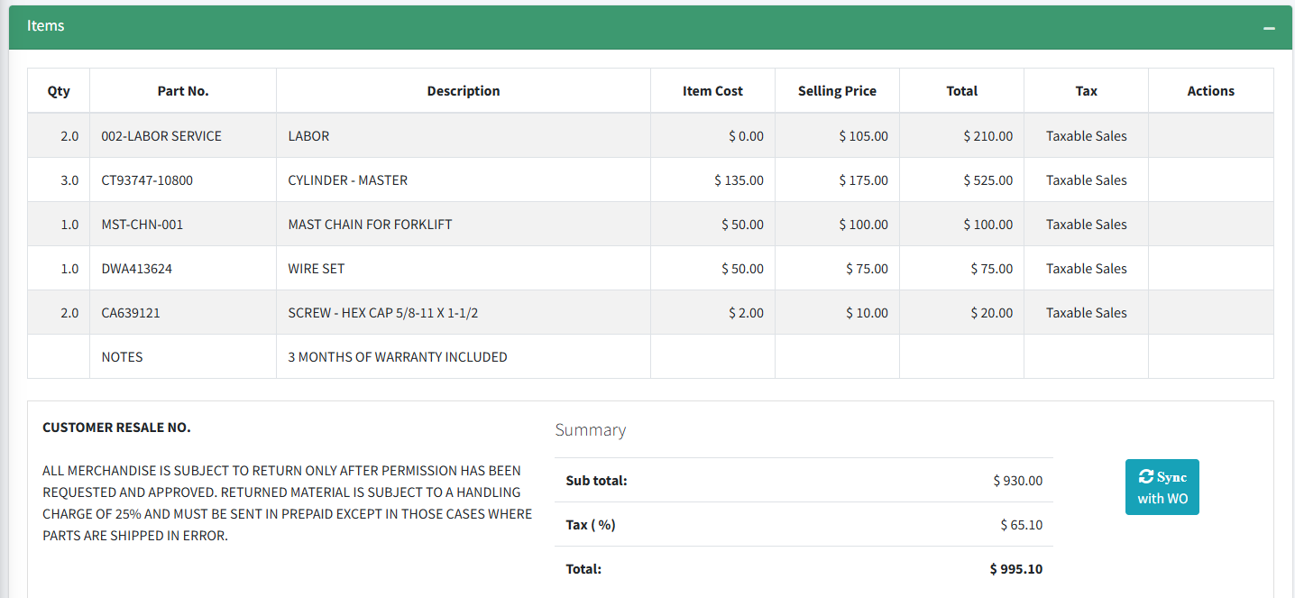 Synchronize customers, items, work orders, purchase order information with QB in real-time.